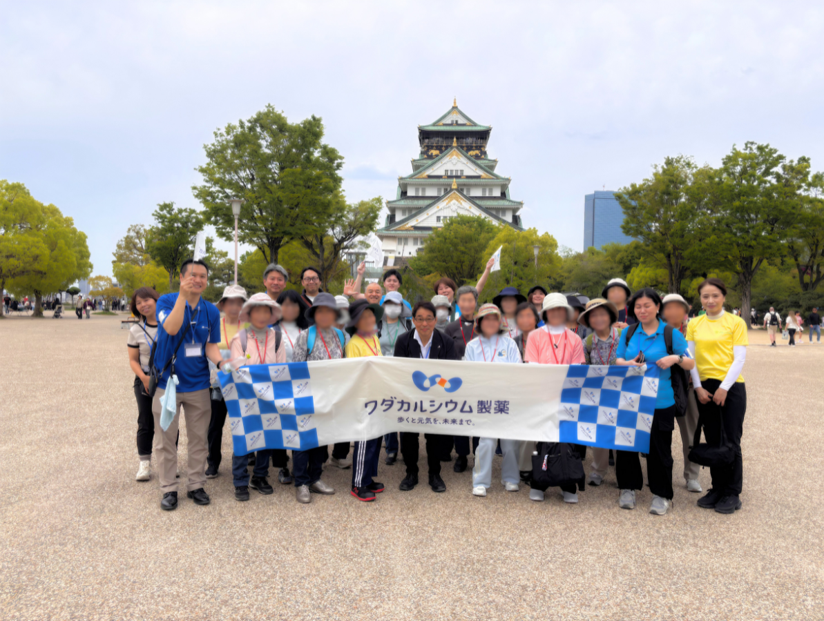 ワダカルシウム製薬が創業170周年という大きな節目を迎えた本年、素晴らしい青空と爽やかな気候に恵まれる中、19名のお客様にご参加いただき、新緑が眩しい大阪城公園の約3.3kmのコースを一緒に歩きました。