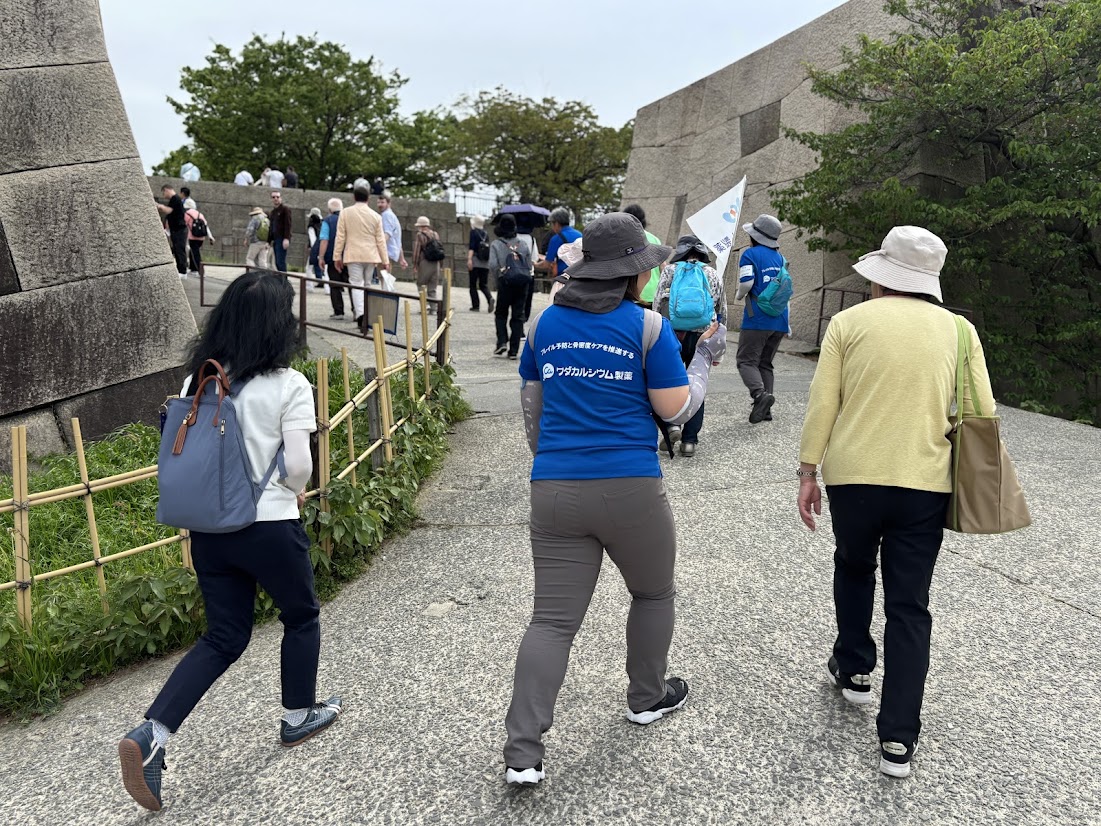 大阪城の雄大な景色や自然を楽しみながら、皆様ご自身のペースでウォーキングを楽しんでいただきました。途中、天守閣前では全員で記念撮影も行い、お客様同士や弊社スタッフとの会話も弾む、終始和やかな時間となりました。