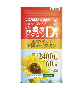 【高濃度ビタミンD3】 紫外線を浴びることが少ない方に不足しがちなビタミンDをお手軽に摂取ができるサプリメントです。1粒に2400IUを高濃度配合で「※卵黄約96個分」のビタミンD3を濃縮!(※卵黄1個のビタミンD3含有量25IUで算出)